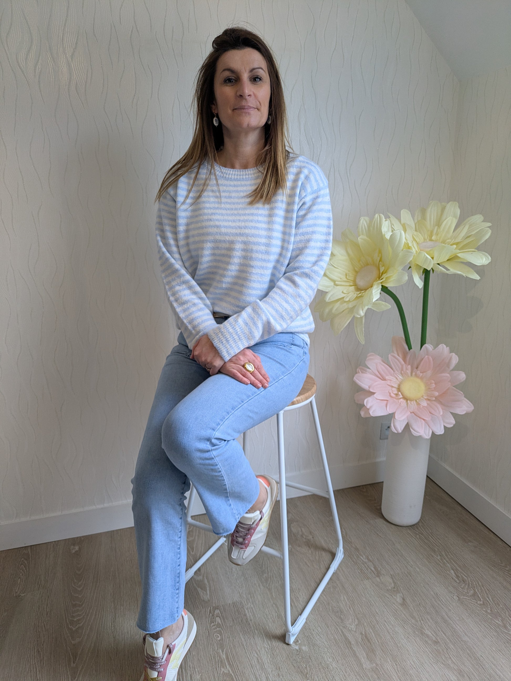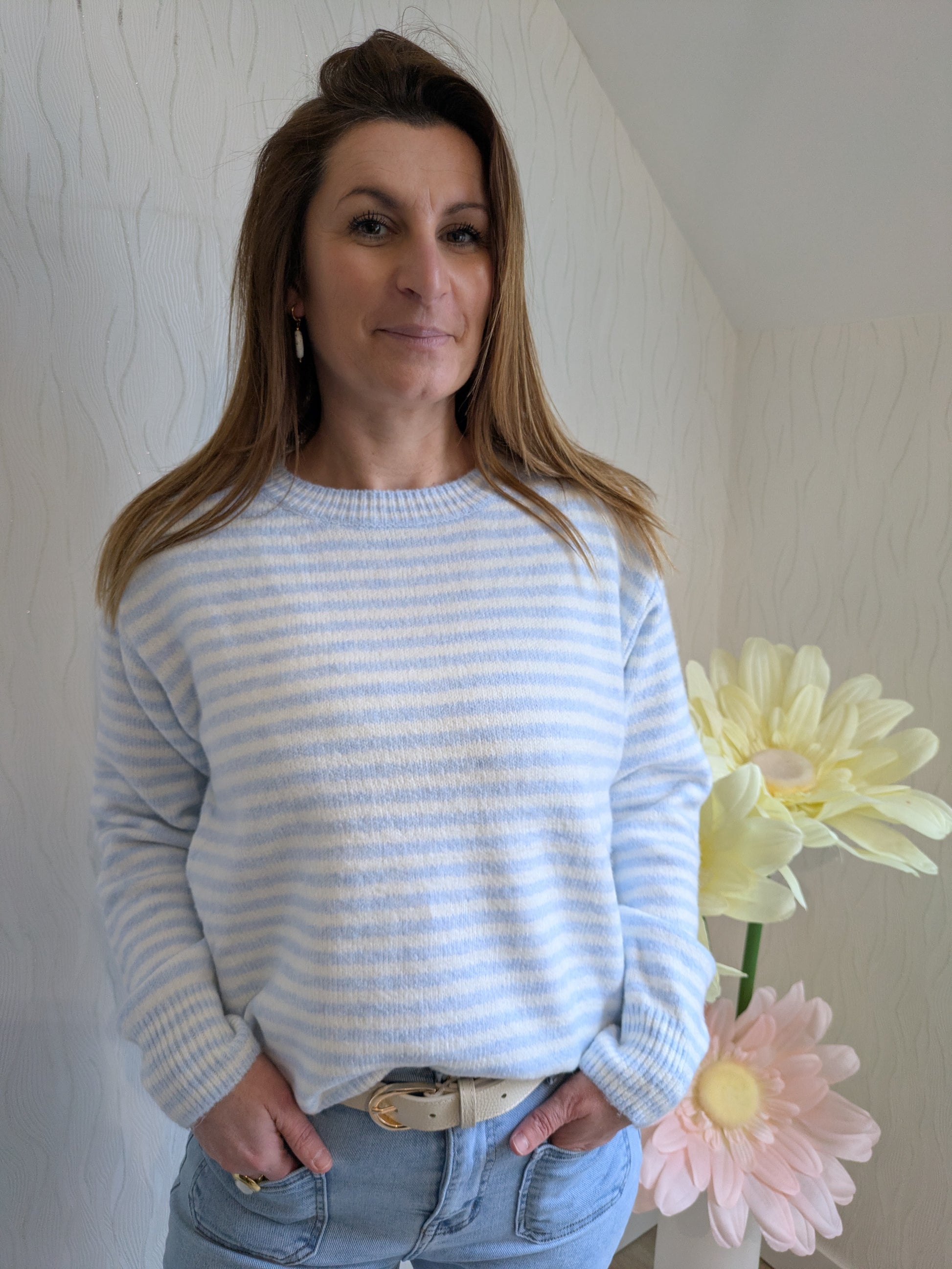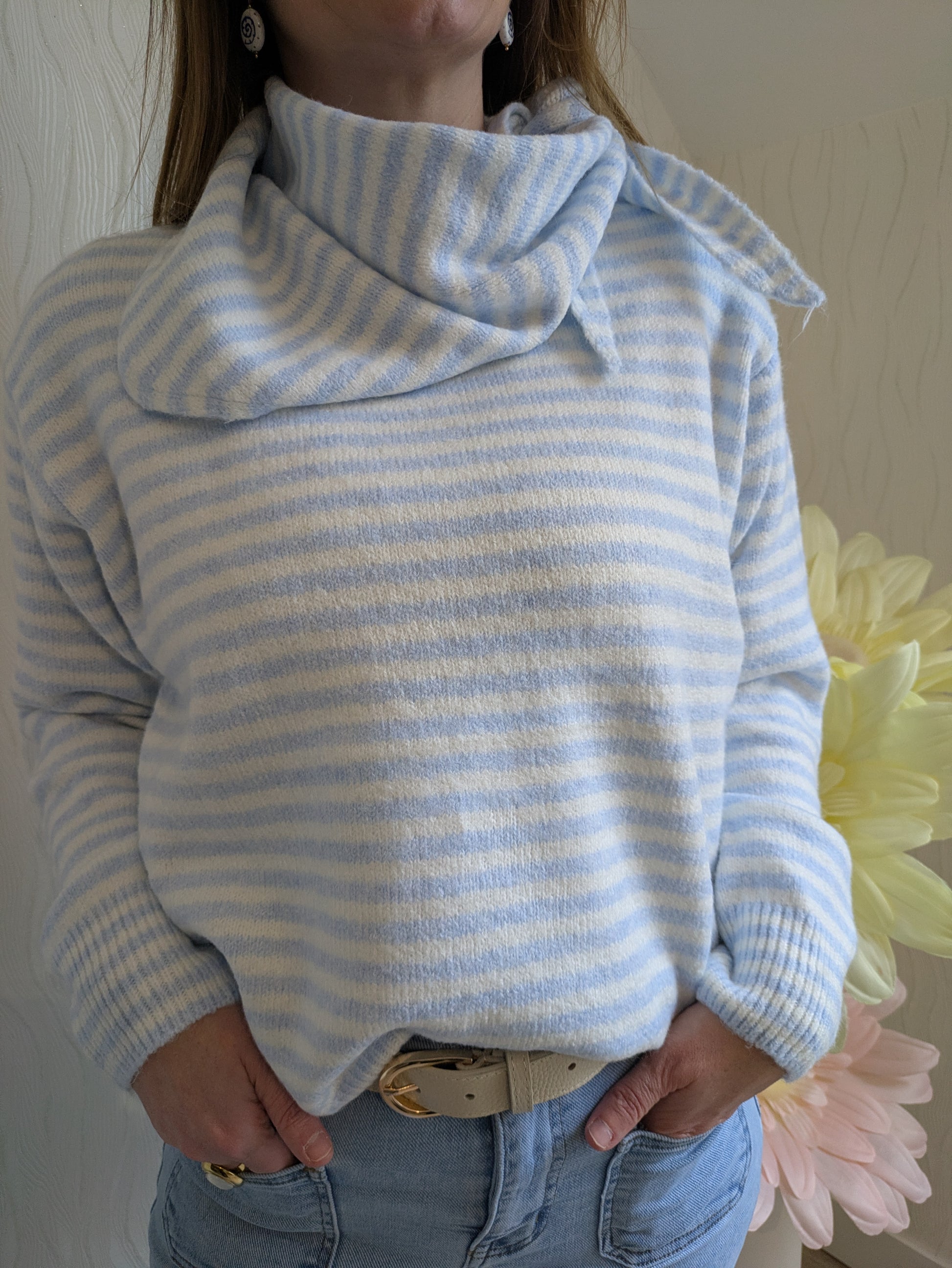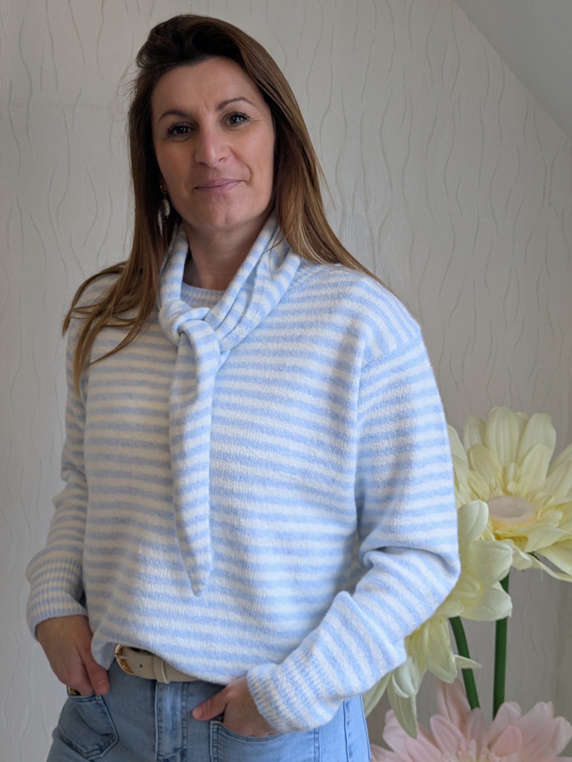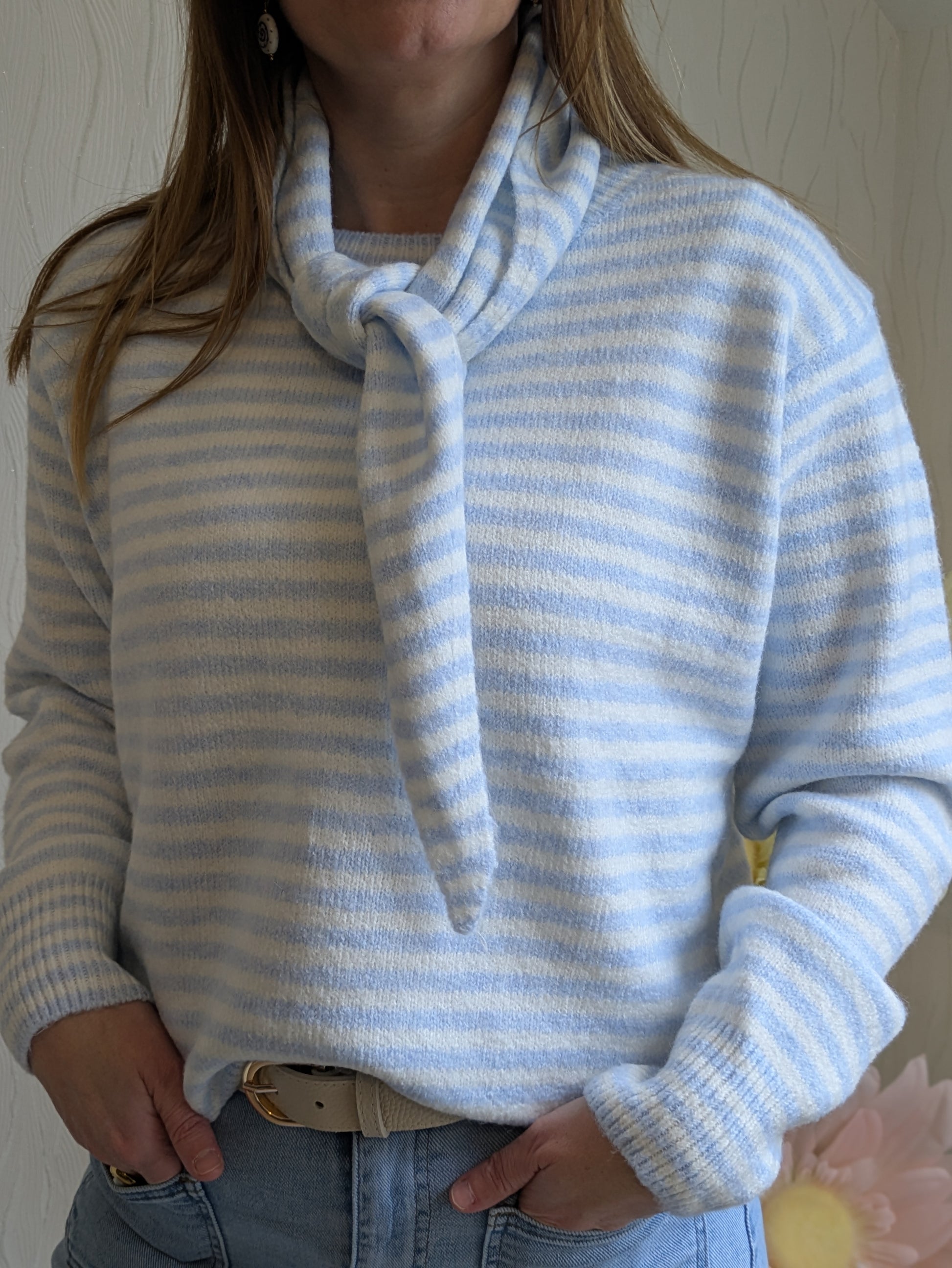Pull rayé avec foulard inclus (amovible)